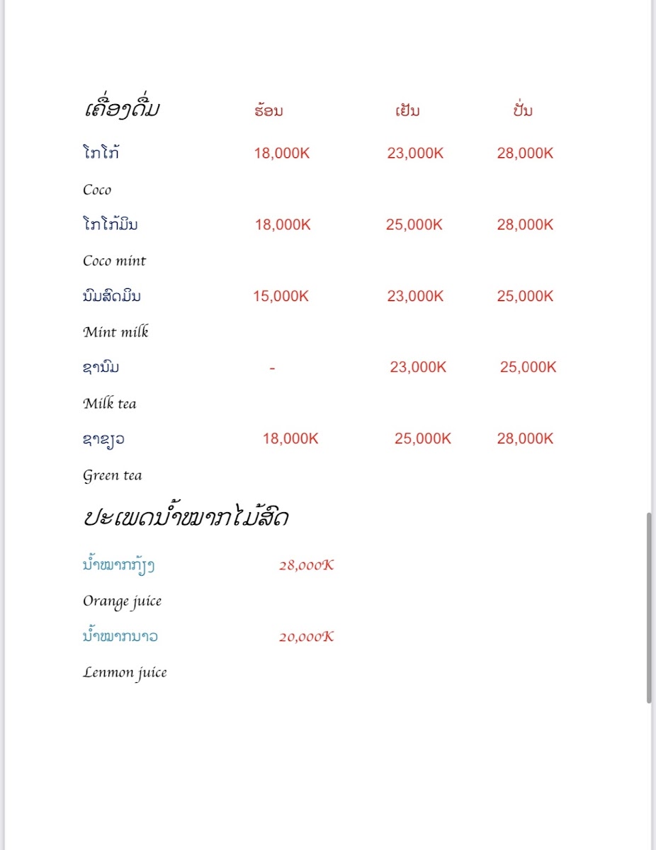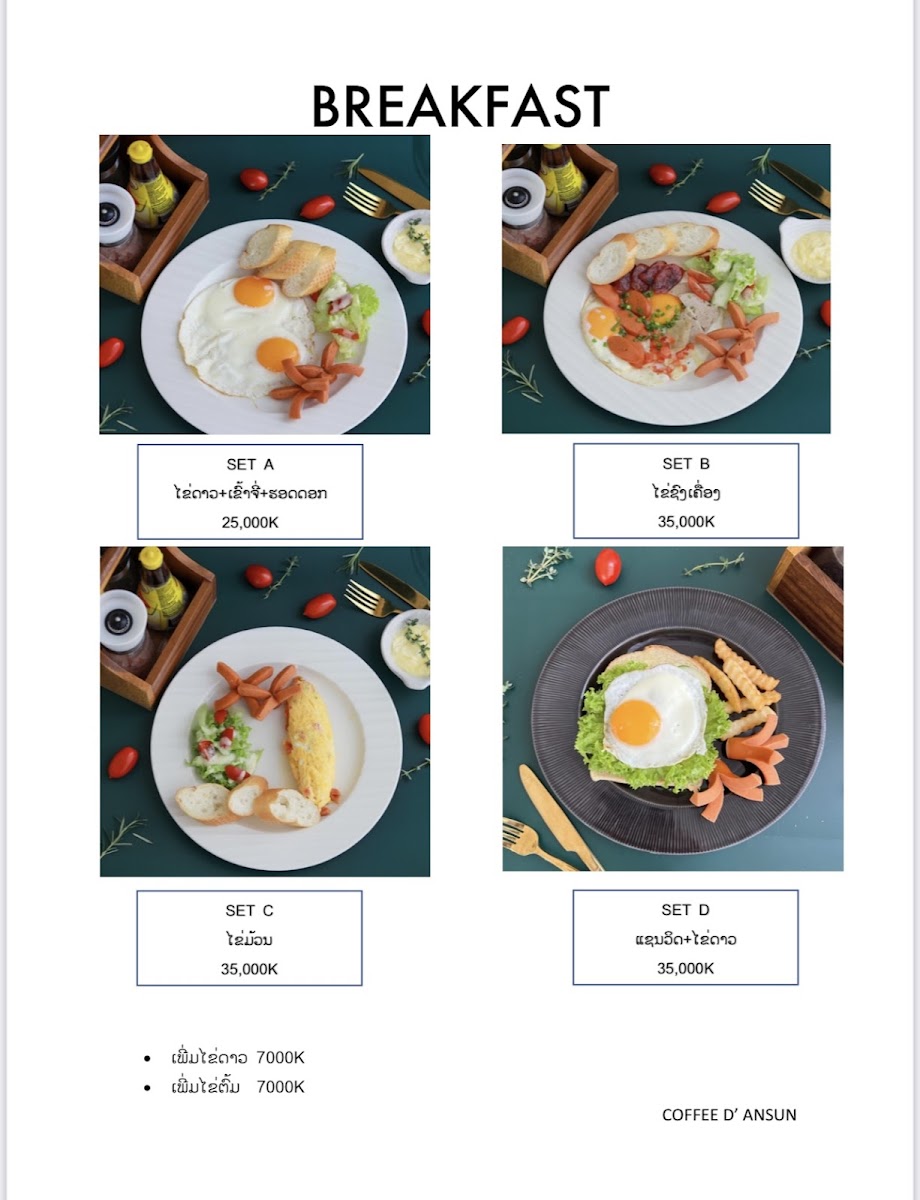 Welcome to Coffee d’ ansun, a chic sanctuary for coffee enthusiasts and food lovers alike, located in the heart of Pakse, Laos. This café doubles as a restaurant, offering a robust menu that features a variety of dishes, from delectable pastas to an array of mouth-watering desserts.